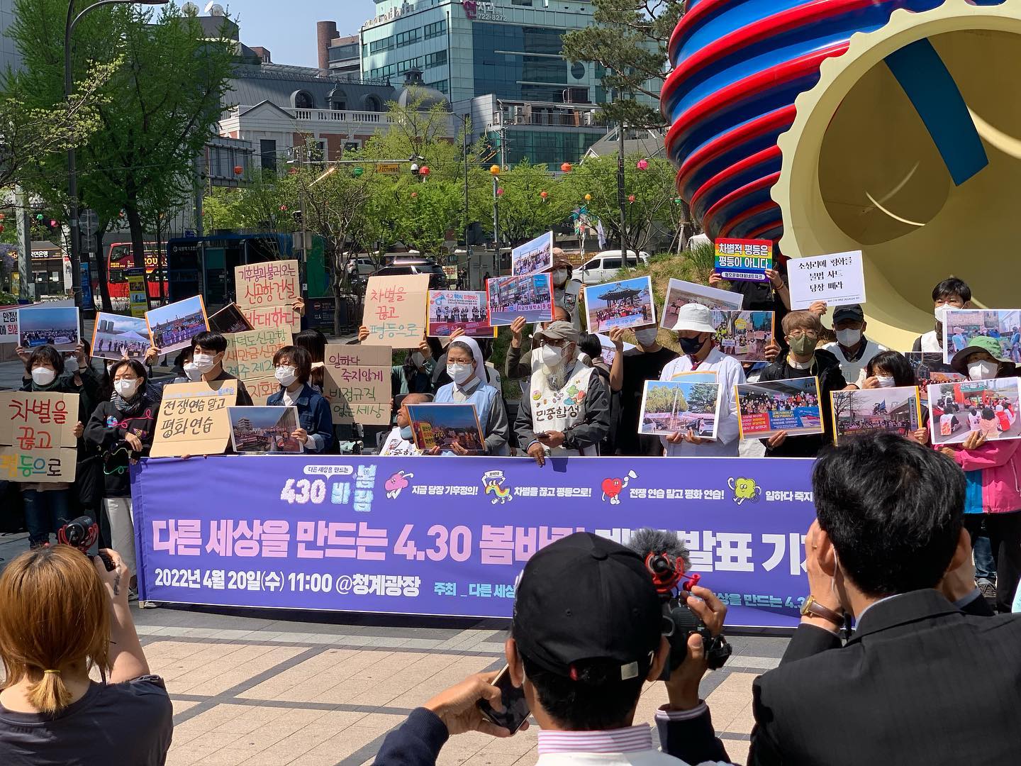 오늘 11시 청계광장에서 430 봄바람 순례단 기자회견이 있어서 가 봤습니다. 기후, 평화, 평등(차별금지), 비정규직 네 가지 사회문제로 싸우는 분들을 만나면서 제주도 포함, 전국을 다니신 분들이 향후 열흘은 수도권을 다닌 후 30일 1시 용산에서 대단원을 내린다고 하십니다. 그 때도 시간을 내 봐야겠습니다.