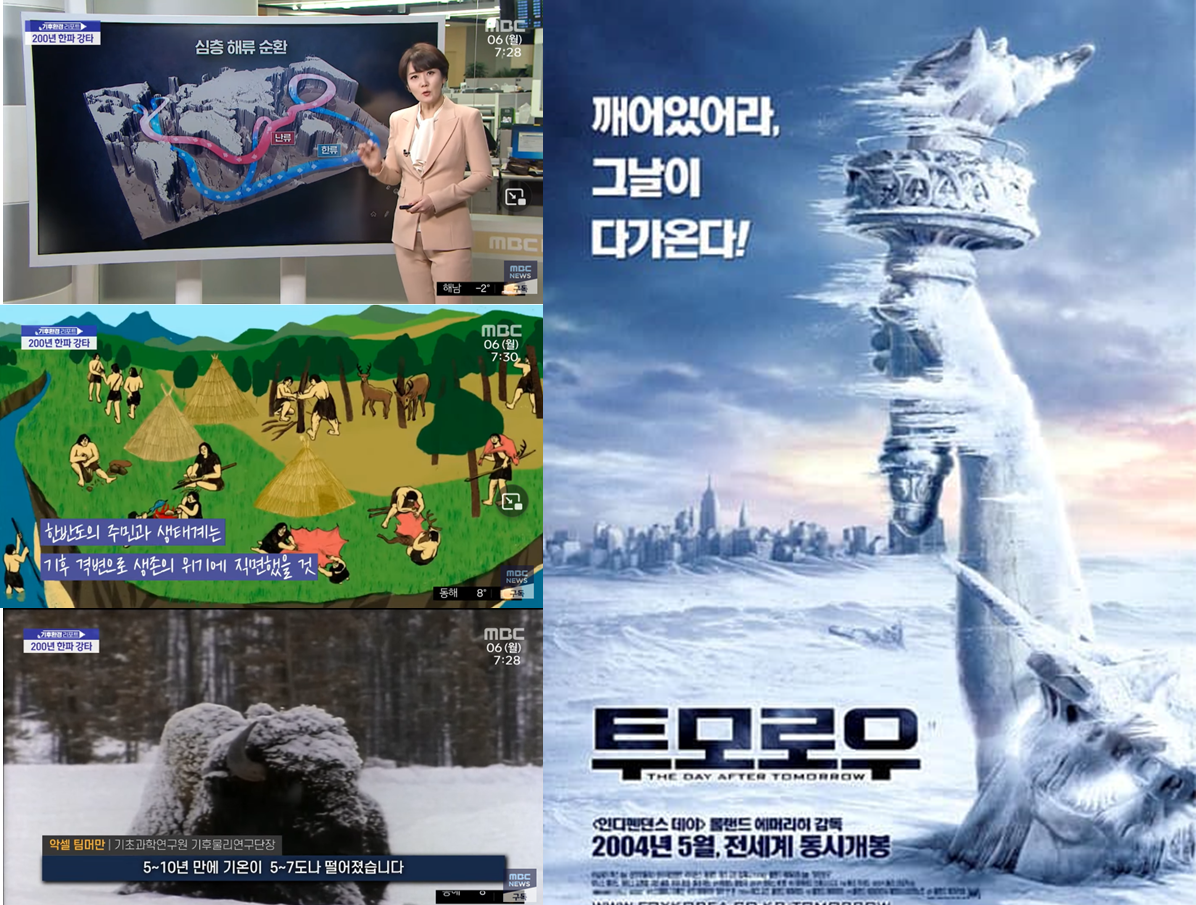 그러나 MBC뉴스의 영상은 불길한 내용도 전합니다. 당시의 해류 변화는 북극 빙하가 녹은 물이 어떤 이유로 갑작스레 유입이 돼 밀도 차이를 일으킨 탓이라고 합니다.