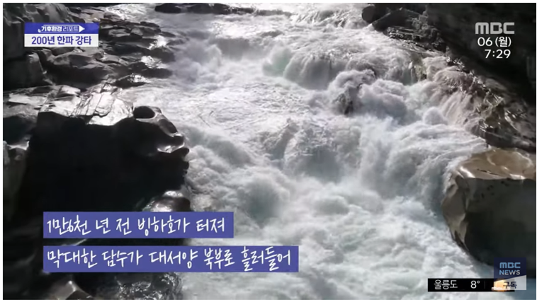 MBC뉴스의 이 영상을 추천합니다. 4분 남짓 분량으로 짧습니다. 1.6만 년 전 해류 변화로 한반도 평균 기온이 삽시간에 7도나 떨어졌다는 발견을 다룹니다.