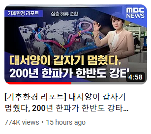 -MBC뉴스 유튜브: '대서양이 갑자기 멈췄다, 200년 한파가 한반도 강타'