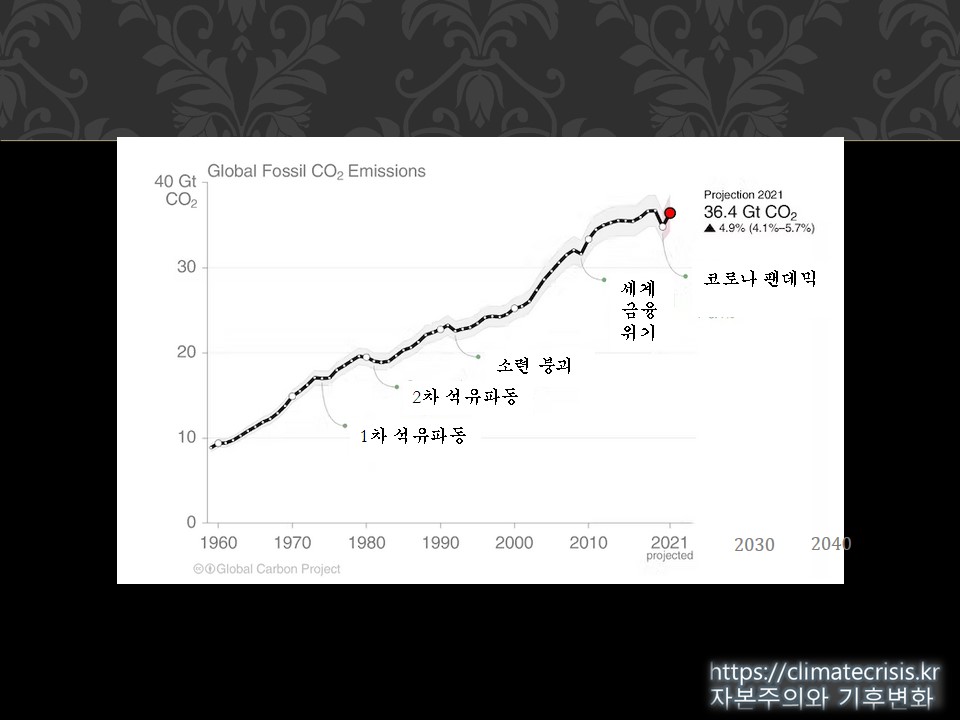이것이 실제 자본주의의 모습입니다. 완전 경쟁 시장이나 혁신과 보이지 않는 손이라는 것은 경제 교과서에나 나오는 이론이고, 실제 자본주의는 온갖 위기가 벌어지고 기후 문제에서는 그런 위기들이 테슬라의 전기차나 애플의 RE100보다 훨씬 영향을 크게 끼칩니다.