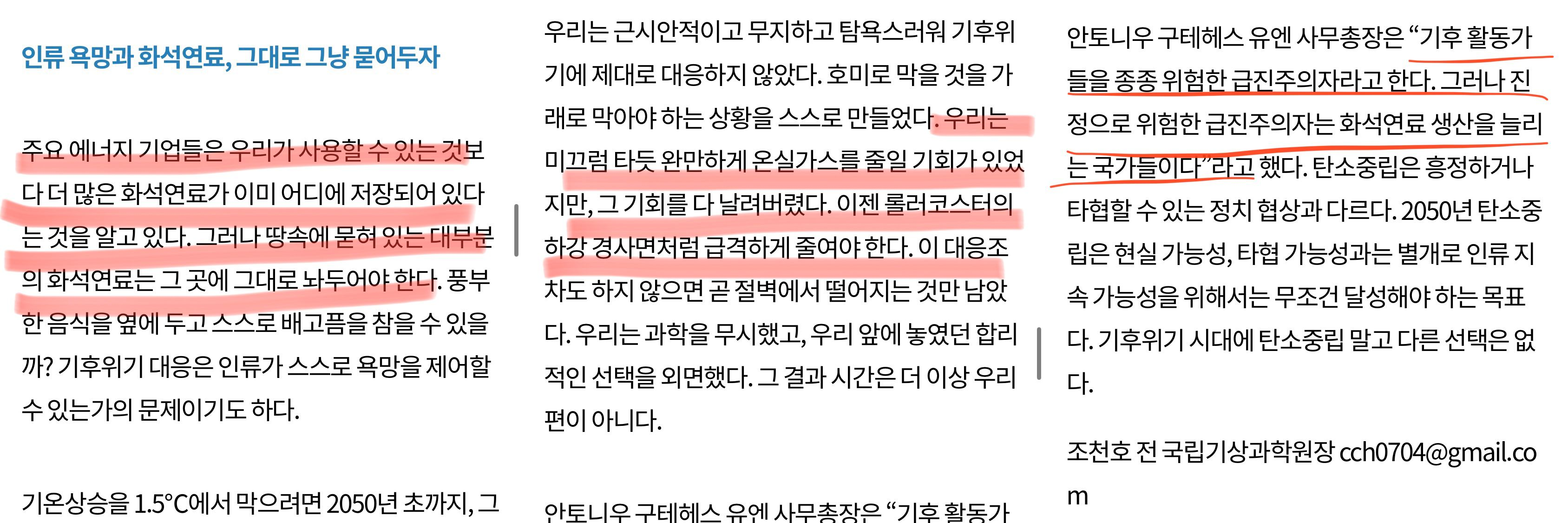 - 한겨레 기사 '1.5°C 지구 가열…진짜 위험한 급진주의자는 누구인가'(6월 2일자)