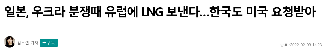 - 일본, 우크라 분쟁때 유럽에 LNG 보낸다…한국도 미국 요청받아 https://www.hani.co.kr/arti/international/japan/1030379.html