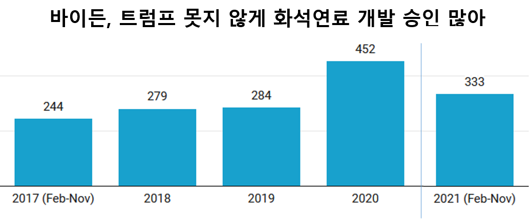 - 바이든의 공공부지 화석연료 개발 승인 건수 비교 자료 https://www.citizen.org/article/bidens-oil-letdown/